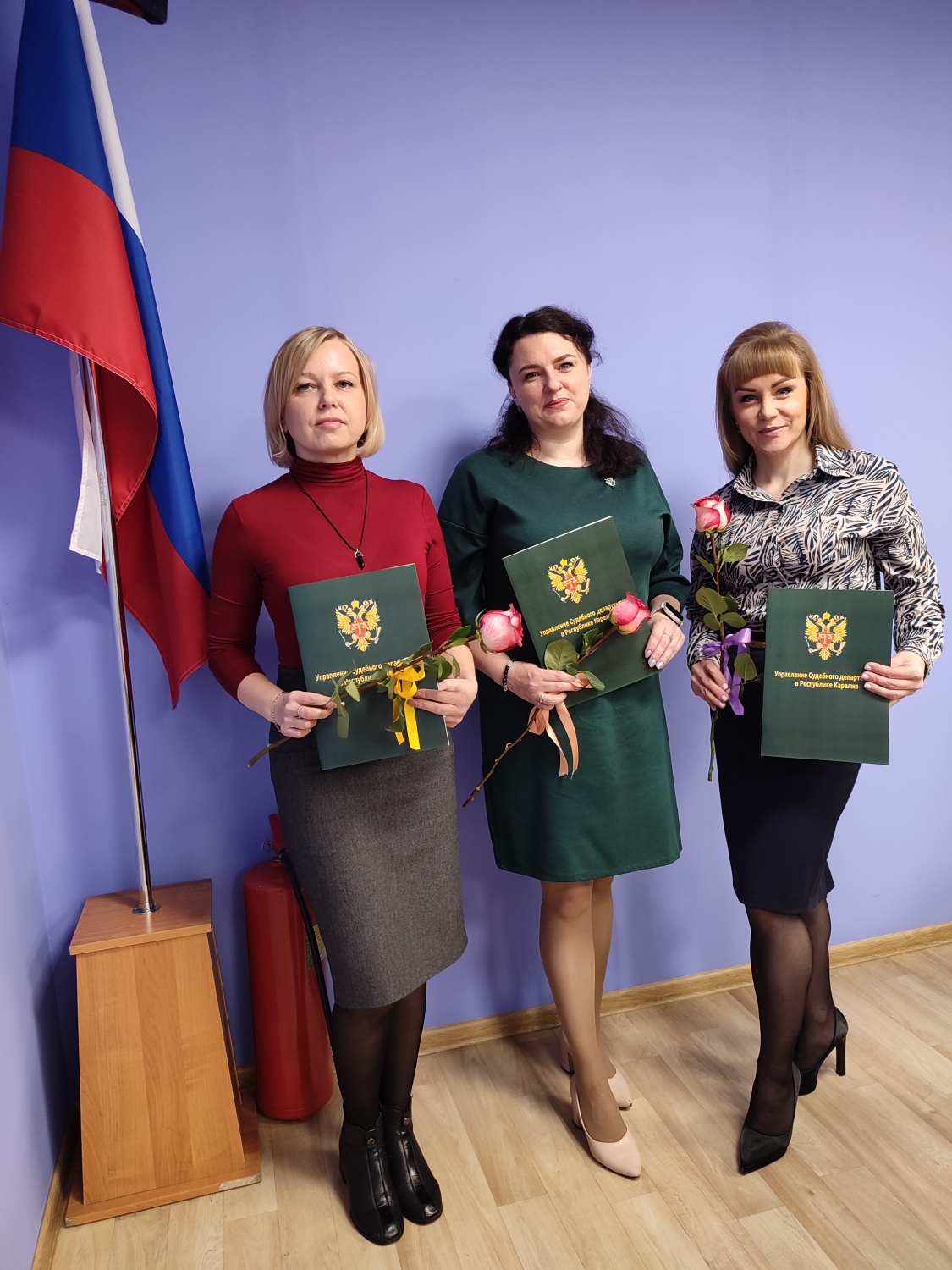 Председатель суда Сахошко Михаил Геннадьевич сердечно поздравил всех присутствующих с праздником, поблагодарил за их труд, пожелал крепкого здоровья, дальнейшей плодотворной работы. Завершив речь словами благодарности вручил заслуженные награды. За многолетний добросовестный труд и безупречное исполнение должностных обязанностей помощнику судьи Футьяновой Татьяне Владимировне, секретарю суда Денисовой Светлане Эдуардовне, секретарю суда Бересневой Ирине Александровне были вручены Почетные грамоты Управления Судебного департамента в Республике Карелия. ![]() |