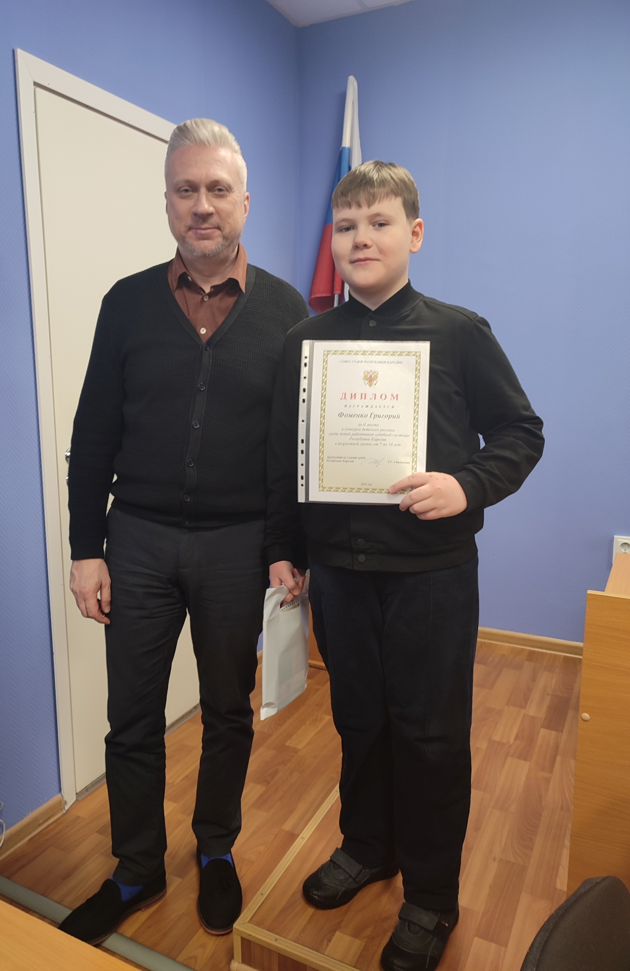 18 декабря 2025 года в Беломорском районном суде Республики Карелия состоялась церемония награждения юных участников творческого конкурса детского рисунка «Защитник Родины моей». Председатель Беломорского районного суда Михаил Геннадьевич Сахошко поздравил всех участников Конкурса с отличными результатами и пожелал новых ярких творческих побед. Победителям Конкурса были вручены памятные дипломы и подарки. ![]() |